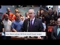 Gov. Jay Nixon joined workers in Kansas City and St. Louis to veto House Bill 116, saying the bill would lower wages, squeeze middle-class families, and subject businesses to criminal and unlimited civil liability.